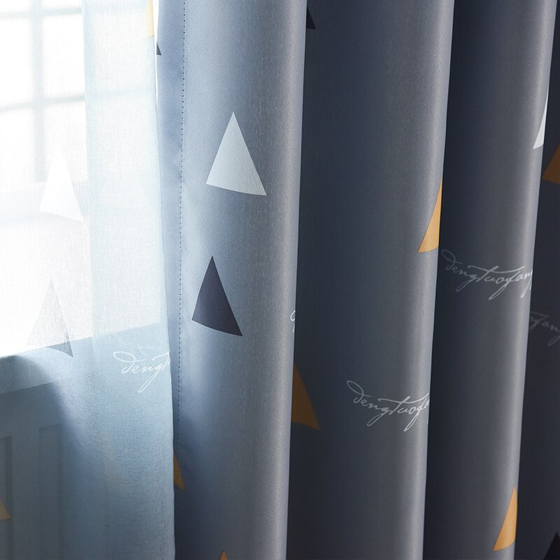 • Rideau opaque motif géométrique avec triangles noirs, blancs et orange