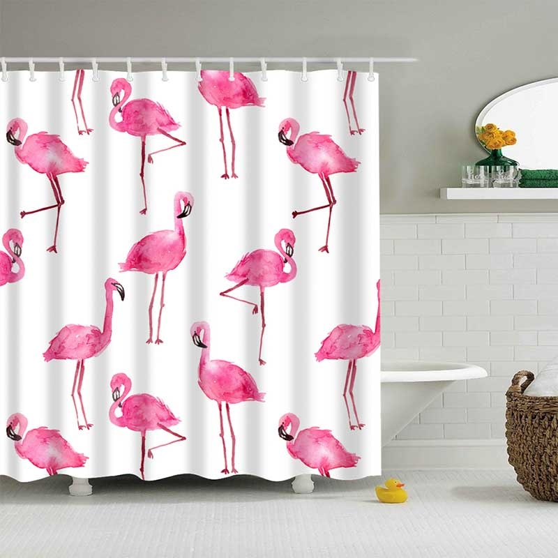 • Rideau de douche flamingo Epupa avec des flamants roses sur fond subtil