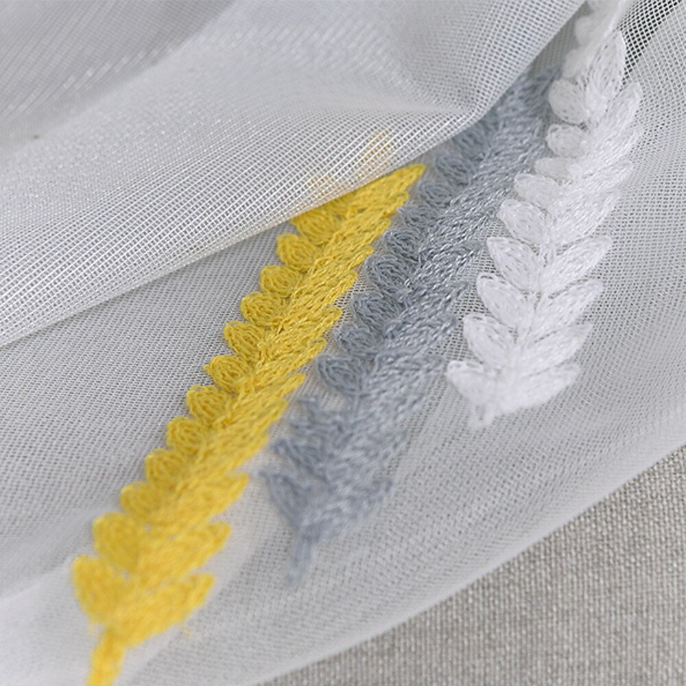 • Rideau voilage moderne Kulim avec motifs brodés évoquant des épis de blé en or, gris ou blanc — apporte une ambiance aérée et moderne tout en préservant l’intimité du foyer.
