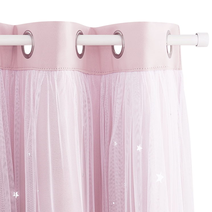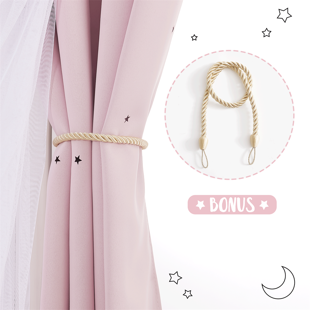 • Motifs d'étoiles et de lunes découpés créant des rayons lumineux lorsque les rideaux sont fermés