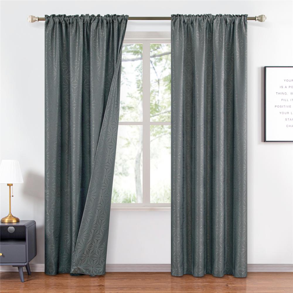 • Aspect et esthétique : Rideau gris foncé à motif géométrique en pétales d'étoiles liées entre elles, aspect légèrement satiné, excellente verticalité