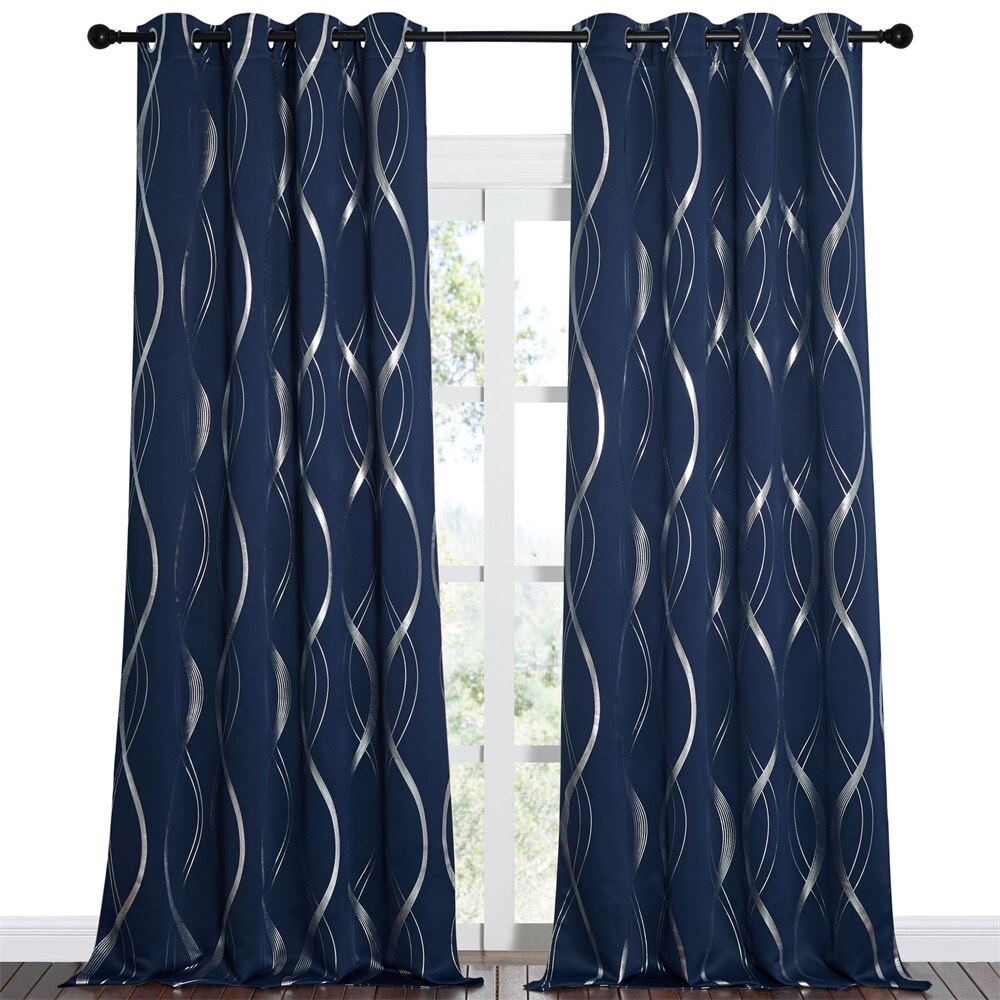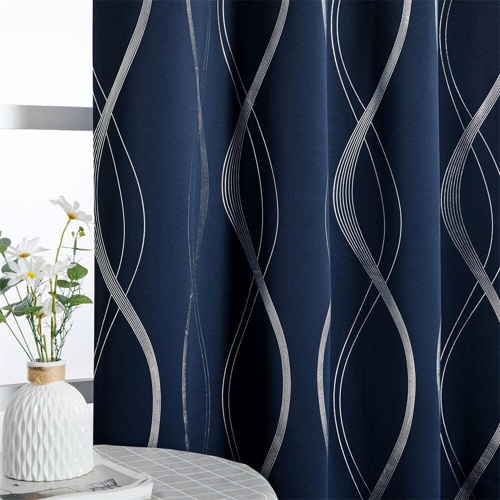 • Rideau occultant géométrique avec lignes ondulantes et argentées sur fond sombre