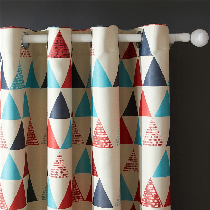 • Motif: géométrique rouge et turquoise avec motifs triangulaires bleus marines, turquoises et cerise sur fond crème