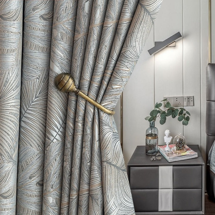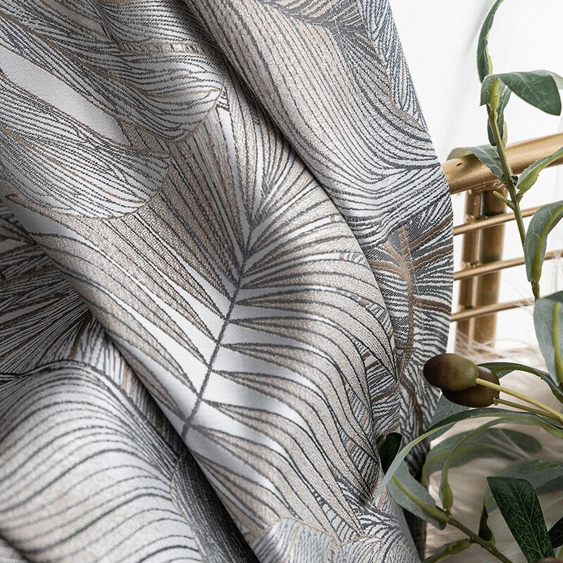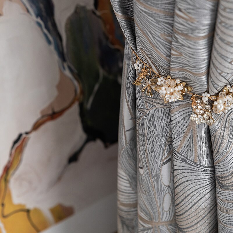 • Rideau occultant gris satiné avec motif délicat (motif floral gris damassé) – référence Rideau Occultant Nirboa