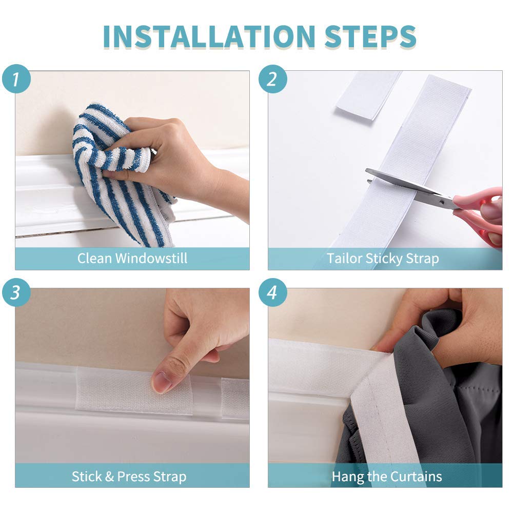 • Accroche scratch Velcro fortement adhésive (Velcro) : peut être installé sans tringle à rideau.