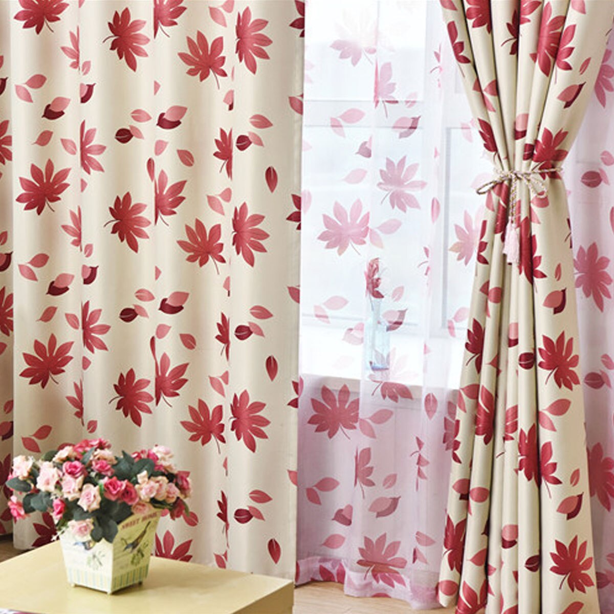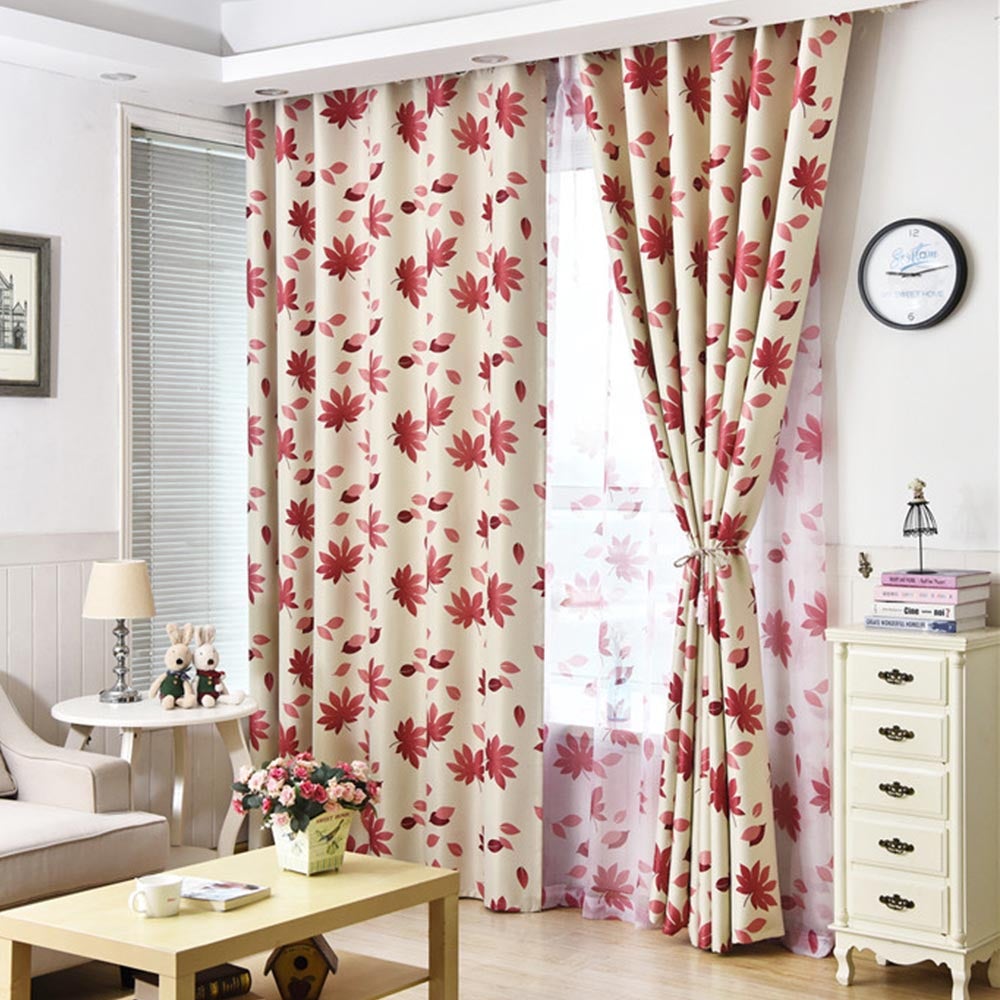 • Nom du produit: Rideau Voilage Maceira (rideau voilage blanc et rouge sur fond blanc avec feuilles d'érable rouges).