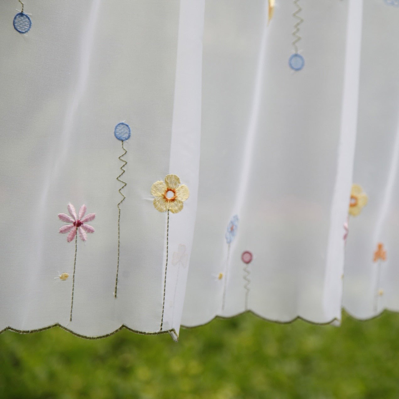 • Article: Rideau voilage brise-bise blanc motif fleurs