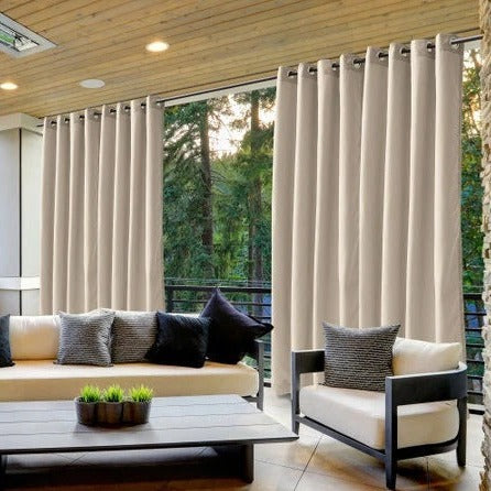 • Rideau extérieur Kiwin en toile beige, résistant à la pluie et au soleil