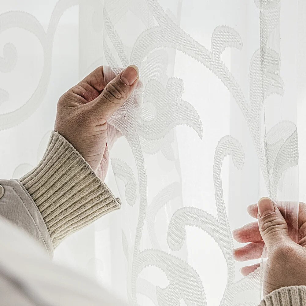 • Rideau voilage en organza avec motifs végétaux brodés